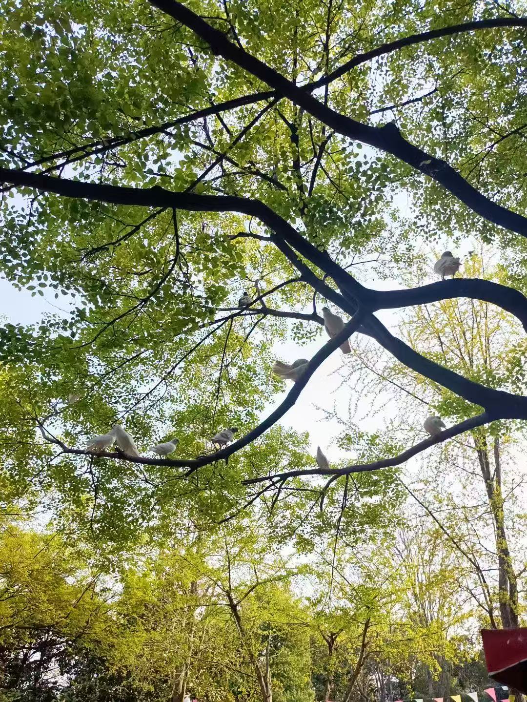 夏日枝头,绿意盎然。几只白鸽悠然栖息,或静立或互动,在繁茂枝叶间绘就一幅闲适灵动的自然图景。(2024级应用化学1班 杨欣怡)