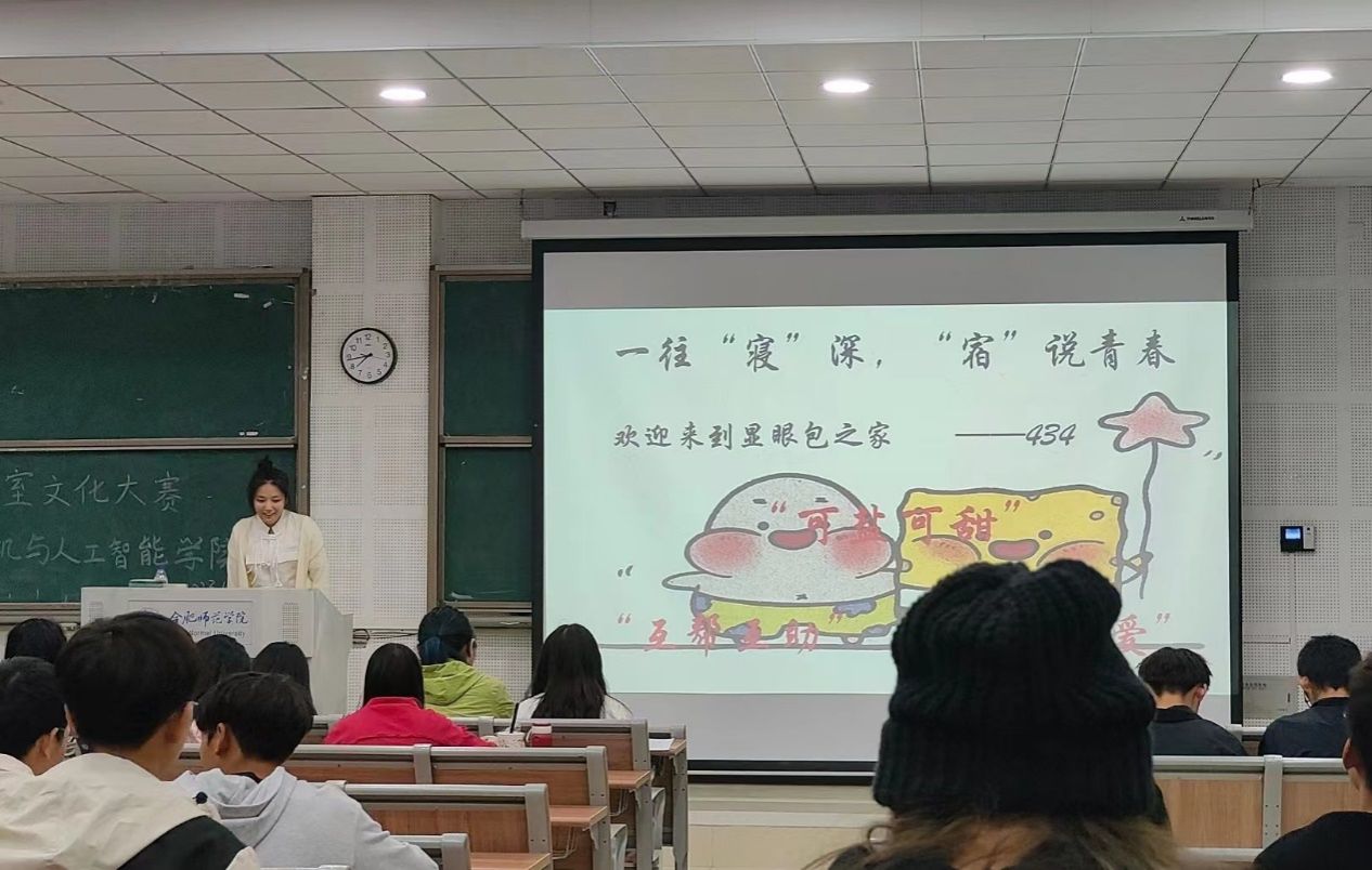 参赛寝室的代表从寝室人员介绍、寝室环境、寝室文化、寝室创新等多个方面展示了自己寝室的特色。同时借助PPT形式向大家展现了寝室的和谐以及浓厚的学习氛围。