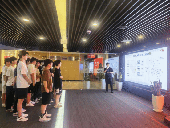本次企业见习实践活动由新华三集团合肥分公司主办,新华三信息安全技术有限公司、新华三技术有限公司合肥研究院合作协办。2021级网络工程班的学生们首先来到新华三信息安全技术有限公司的信息安全基地参观学习。安全基地的老师结合现有的网络安全设备和网络安全解决方案,给学生开展了一场深入浅出的精彩介绍。
