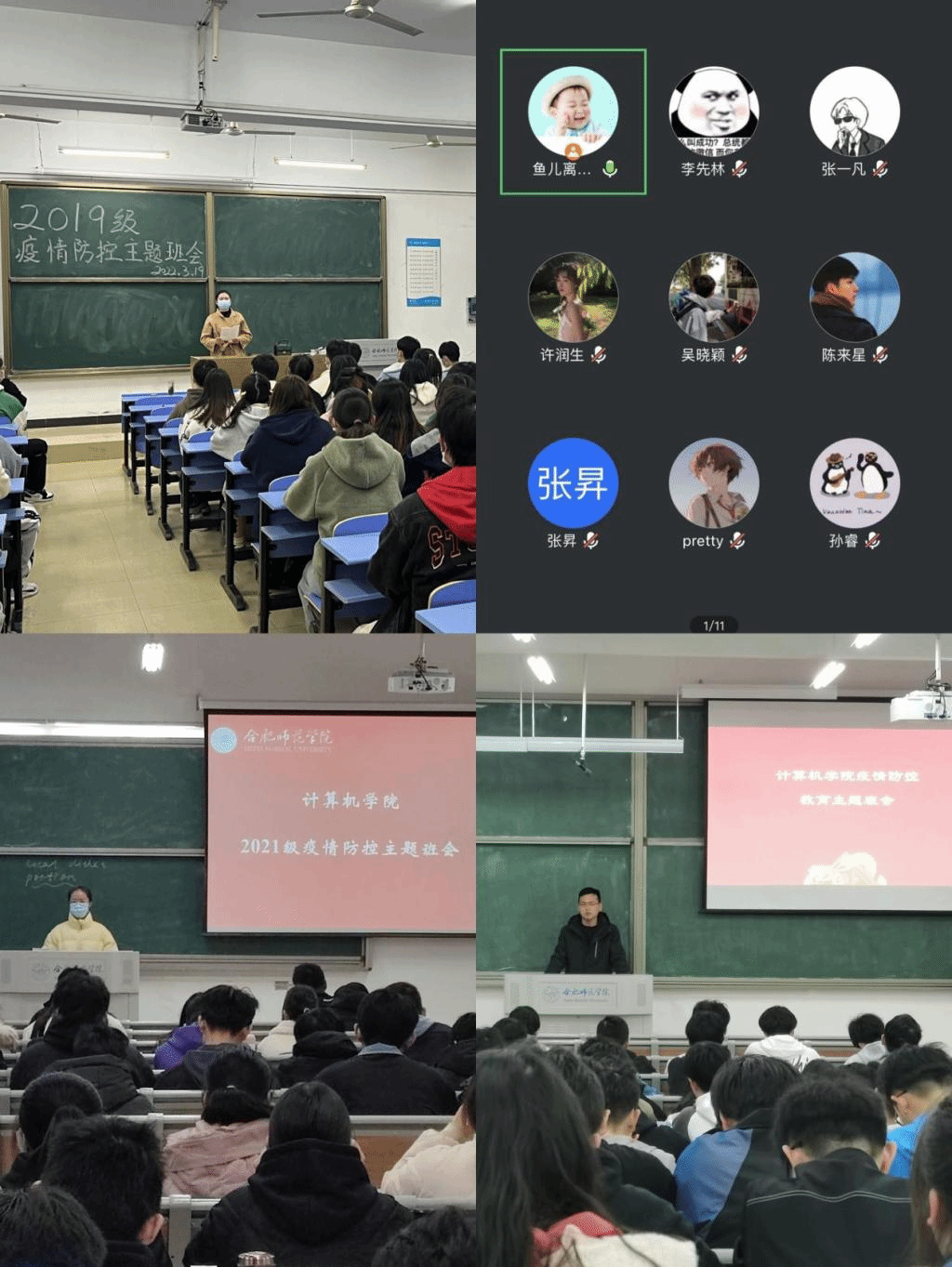 为贯彻落实上级部门及学校关于新型冠状病毒肺炎疫情防控的工作部署,切实提升ac米兰官网学生的个人防护意识和能力,计算机学院各年级于3月18日——19日分别在锦绣校区和滨湖校区召开疫情防控主题班会。