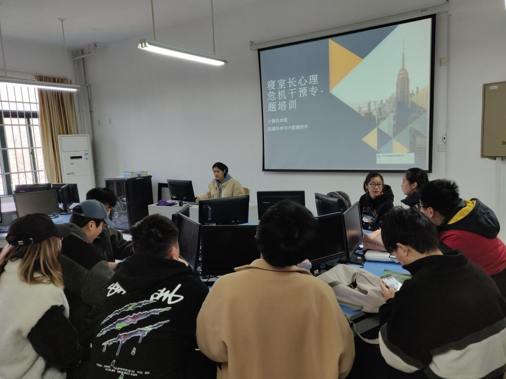 为进一步落实我校心理素质教育与心理危机预防与干预机制,加强寝室长队伍建设,充分发挥寝室长在大学生心理素质教育中的作用,计算机学院于近期分别在锦绣校区、滨湖校区开展了寝室长心理危机干预培训会,会议由各年级辅导员主持,学院全体寝室长参加。