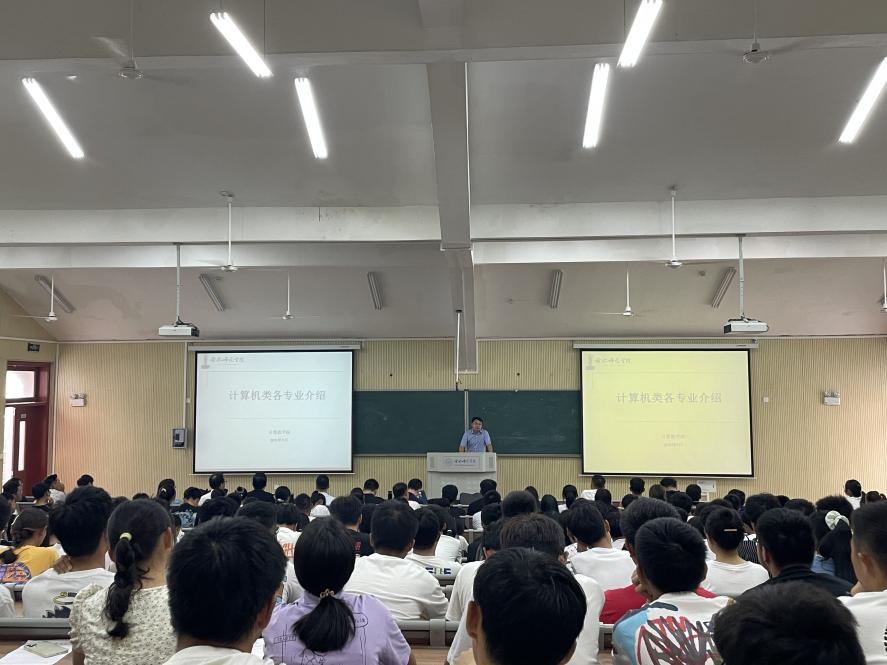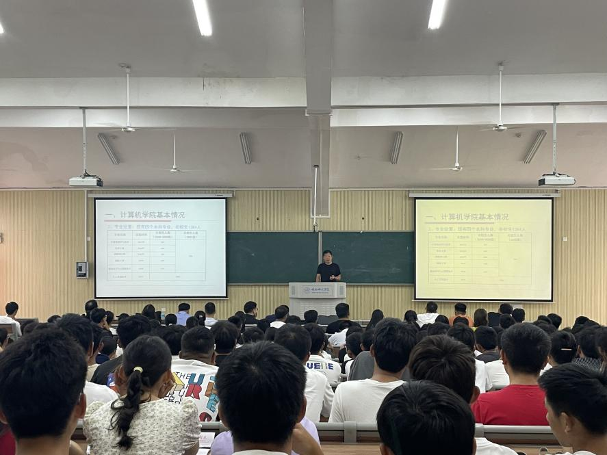 9月23日上午,计算机学院2021级师生见面会在滨湖校区铭传A101举行。计算机学院党委书记王祥、院长兼党委副书记郭玉堂、副院长谢飞、各专业系主任出席,计算机学院294名新生到场参加,会议由新生辅导员龚永琦主持。