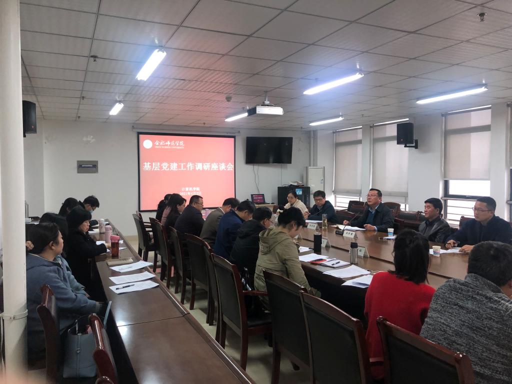 为深化巩固巡视整改成果,全面了解ac米兰官网基层组织建设情况,4月2日下午校党委书记徐成钢、党委副书记吴昕春、组织部部长华银峰及组织部余军、张婉玉一行来到ac米兰官网就基层党建工作进行专题调研。本次调研座谈会在计算机学院党员活动室进行,会议由组织部部长华银峰主持,计算机学院党委委员、党支部书记和教师党员代表参加座谈会。