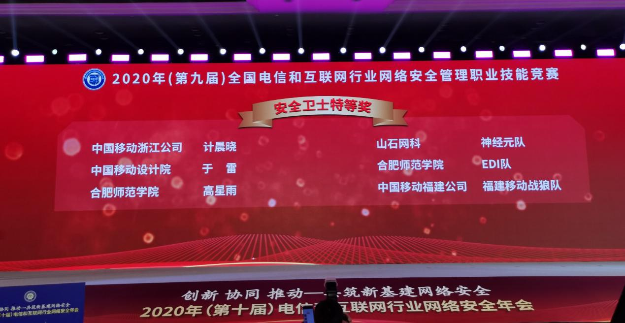 2020年12月20-22日,由中国通信企业协会、中国国防邮电工会全国委员会联合主办,中国通信企业协会通信网络安全专业委员会、中国国防邮电工会职工技术协会共同承办的“2020年全国电信和互联网行业网络安全管理职业技能竞赛(第九届)”全国总决赛在广州圆满闭幕。本届全国总决赛共覆盖全国31个省份,参赛对象范围广泛,涉及通信、互联网、电力、教育、政企等多个行业和领域的网络安全相关技术专家和学生,分别由各省经过层层选拔而产生的312名个人选手,106支参赛团队参加。比赛结合互联网安全技术特征和发展新趋势,聚焦前沿技术领域,围绕5G、区块链、大数据、物联网等安全新领域设置赛题,在综合竞赛环境中搭建典型网络安全防护技术对抗场景,重点考察选手的监测预警、漏洞挖掘、安全运维、团队协助、安全加固和应急响应等专业技术水平和综合攻防能力。总决赛设立安全卫士个人赛、安全卫士团队赛、安全卫士个人攻防精英赛、安全卫士团队攻防精英赛四大环节。根据参赛选手不同分别设定基础电信运营企业赛场、综合赛场(互联网和网络安全企业、其他行业企事业单位)、学生赛场。