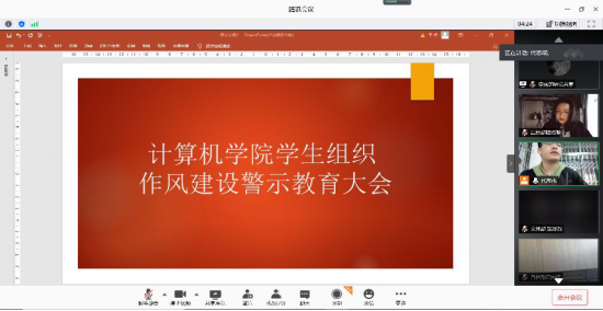 11月22日,计算机学院学生会召开关于高校学生组织作风建设警示教育线上会议,会议由计算机学院执行主席代志成主持,主席团成员及全体学生会工作人员参加本次大会。