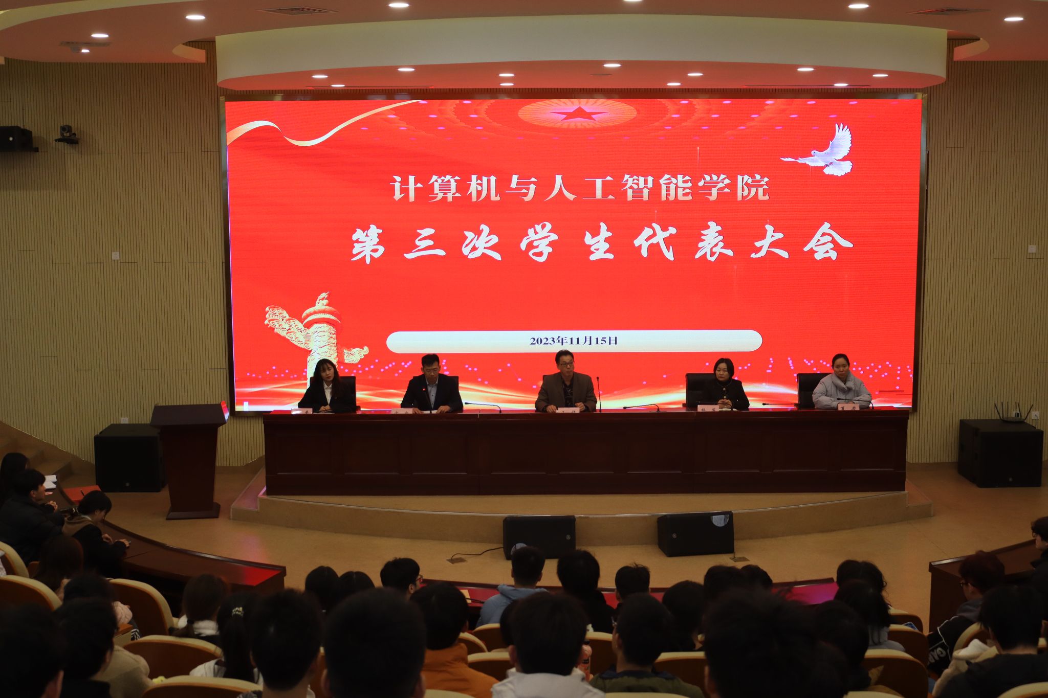 近日,ac米兰官网中文网站第三次学生代表大会在滨湖校区铭传楼学术报告厅顺利召开。学院党委书记王祥、副书记杨萍,辅导员夏芳出席会议,上一届学生会主席团成员李柔及132学生代表参加大会。会议由院团委书记宗彪主持。