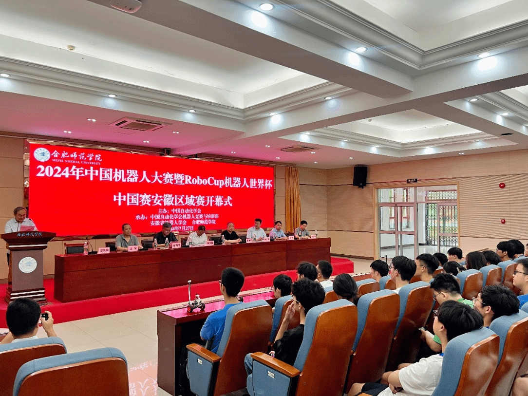7月27日,由中国自动化学会主办,安徽省机器人学会和合肥师范学院承办,合肥凌翔信息科技有限公司协办的2024中国机器人大赛暨RoboCup机器人世界杯中国赛安徽区域赛在我校隆重举行。合肥师范学院教务处处长钱立青,中国自动化学会机器人竞赛工作委员会主任、国防科技大学教授郑志强,安徽省大学生创新创业办公室主任董承军,安徽省机器人学会副理事长孙丙宇,安徽省机器人学会秘书长王俊,合肥师范学院ac米兰官网中文网站院长谢飞等出席开幕式,大赛评委以及部分教师代表、学生代表参加开幕式,开幕式由安徽省机器人学会副秘书长、安徽大学教授苏亚辉主持。