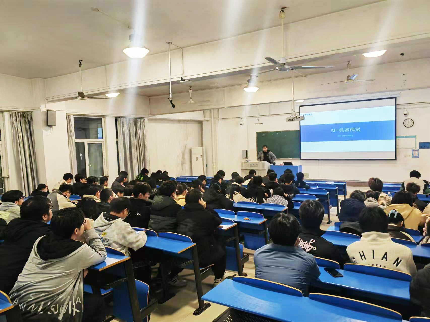 讲座现场气氛热烈,学生表现出对此次讲座的高度热情和浓厚兴趣。钟钊先生通过生动的案例和深入浅出的讲解,详细介绍了AI和机器视觉在现代科技领域中的重要应用,包括工业自动化、医疗影像分析、智能安防监控等方面。讲座过程中,钟先生还展示了大量实际项目中的数据和图片,使抽象的理论知识变得直观易懂,同学们全神贯注地聆听,不时记录下重点内容。