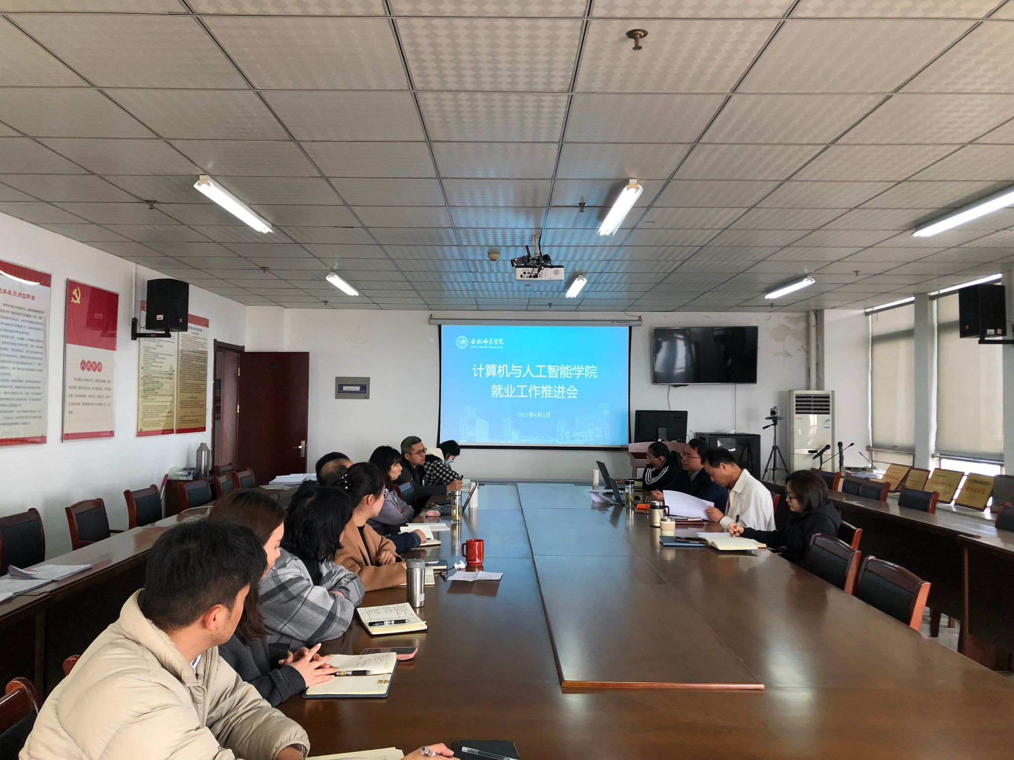 谢飞对当前2025届毕业生就业创业工作形势进行分析,他指出,自2024年9月以来,学院已联合科大国创、新华三等企业举办多次专场招聘会,联合10余家企业开展“访企拓岗”专项活动,推动实习就业、产教融合等合作模式。针对考研、考公学生,学院举办多次经验分享交流会,分门别类进行指导帮扶,引导学生树立正确的就业观念,鼓励学生积极到基层就业。下一步,学院将优化整体联动体系,加强各教研室和学生日常管理工作的协同配合,推动就业创业工作做实做细。要继续依托学科优势,深化校企协同育人,持续拓展市场宽度,为学生搭建良好的就业平台。要强化就业创业指导帮扶,优化就业数据管理追踪,创新就业创业工作激励机制,全方位多层次为2025年就业创业工作赋能增效。