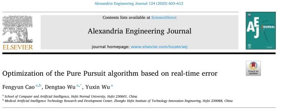 在智能交通系统(ITS)飞速发展的当下,自动驾驶技术正逐步从实验室走向实际应用。其中,路径跟踪算法作为自动驾驶车辆的关键技术之一,其性能的优劣直接决定了车辆行驶的安全性与舒适性。近期,合肥师范学院ac米兰官网中文网站的曹风云老师及其团队在这一领域取得了重要进展,相关成果发表在《Alexandria Engineering Journal》(中科院二区,IF = 6.2),论文题目为“Optimization of the Pure Pursuit algorithm based on real-time error”。曹风云老师为本论文的第一作者,吴登涛同学为通讯作者、第二作者,武雨欣同学为第三作者,合肥师范学院ac米兰官网中文网站为唯一通讯单位。