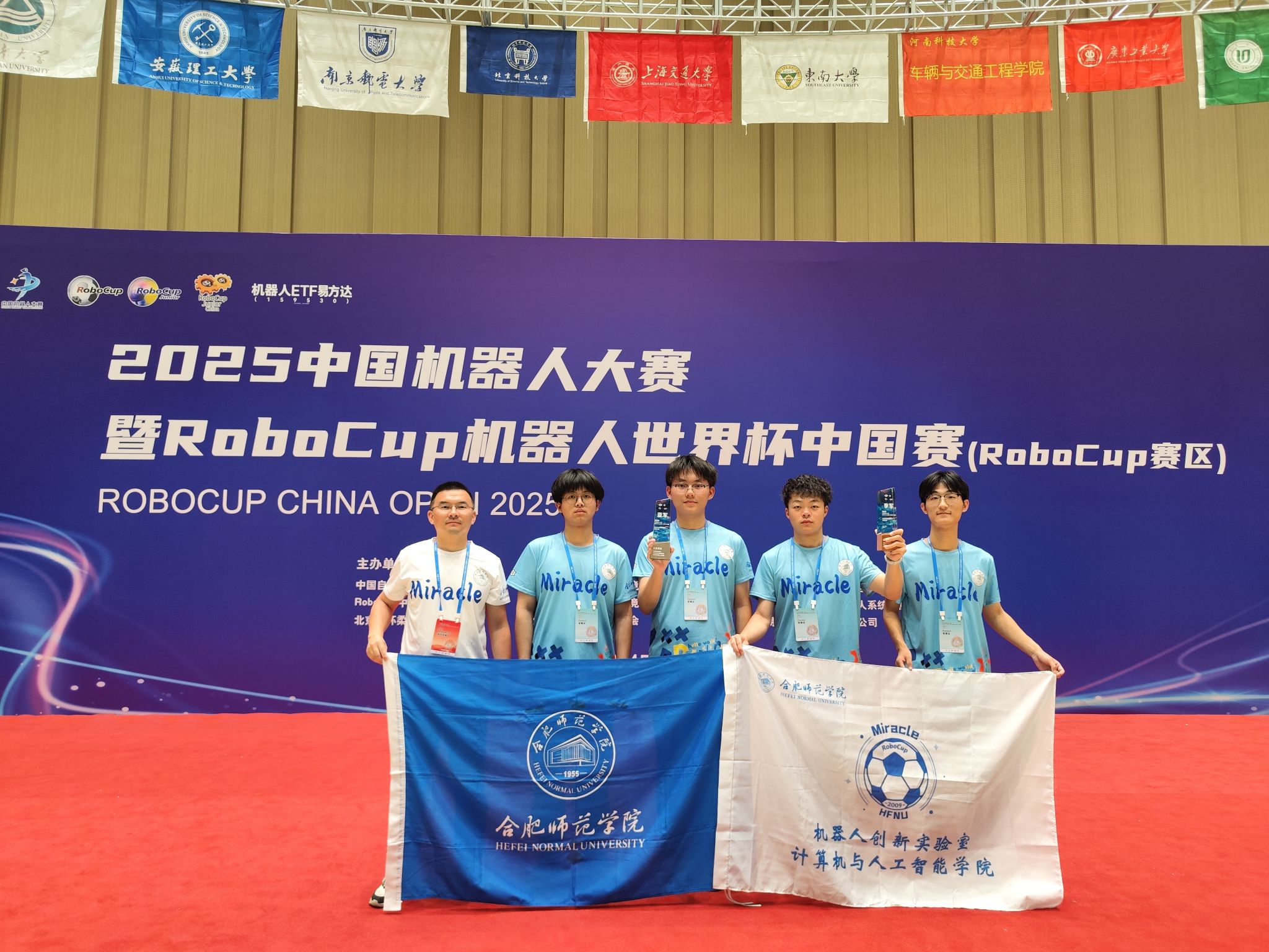 2025年5月2日至4日,2025中国机器人大赛暨RoboCup机器人世界杯中国赛在北京雁栖湖国际会展中心圆满落幕。作为国内机器人领域最具影响力的赛事之一,本届大赛由中国自动化学会、RoboCup中国委员会及北京市怀柔区人民政府联合主办,吸引了全国73所高校的233支参赛队伍同台竞技,成为展示机器人技术创新与学术成果的重要平台。经过激烈角逐,ac米兰官网中文网站机器人创新实验室Miracle团队在RoboCup仿真2D与仿真3D项目中分别斩获亚军与季军,双双登上领奖台。