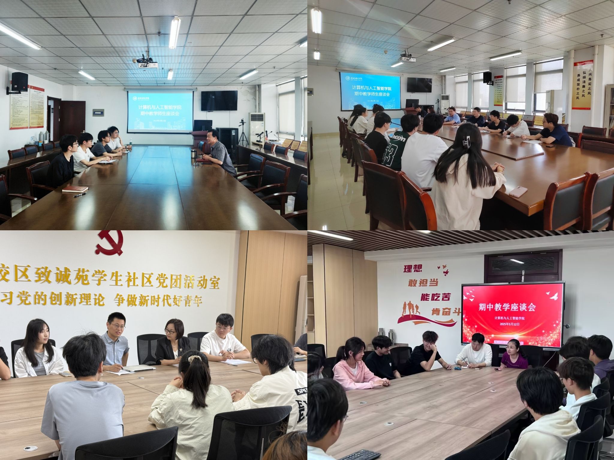 座谈会分别针对四个年级的学生群体展开,每组均配备一名学院处级领导干部、一名专业负责人以及一名辅导员老师。各班选派2名学生代表参与其中,确保学生的声音能够充分传达。在座谈会上,学生们踊跃发言,围绕课程学习情况展开深入交流,针对学院的教学安排、师资配备、实践资源、校园生活等方面提出了诸多建设性的意见和建议。