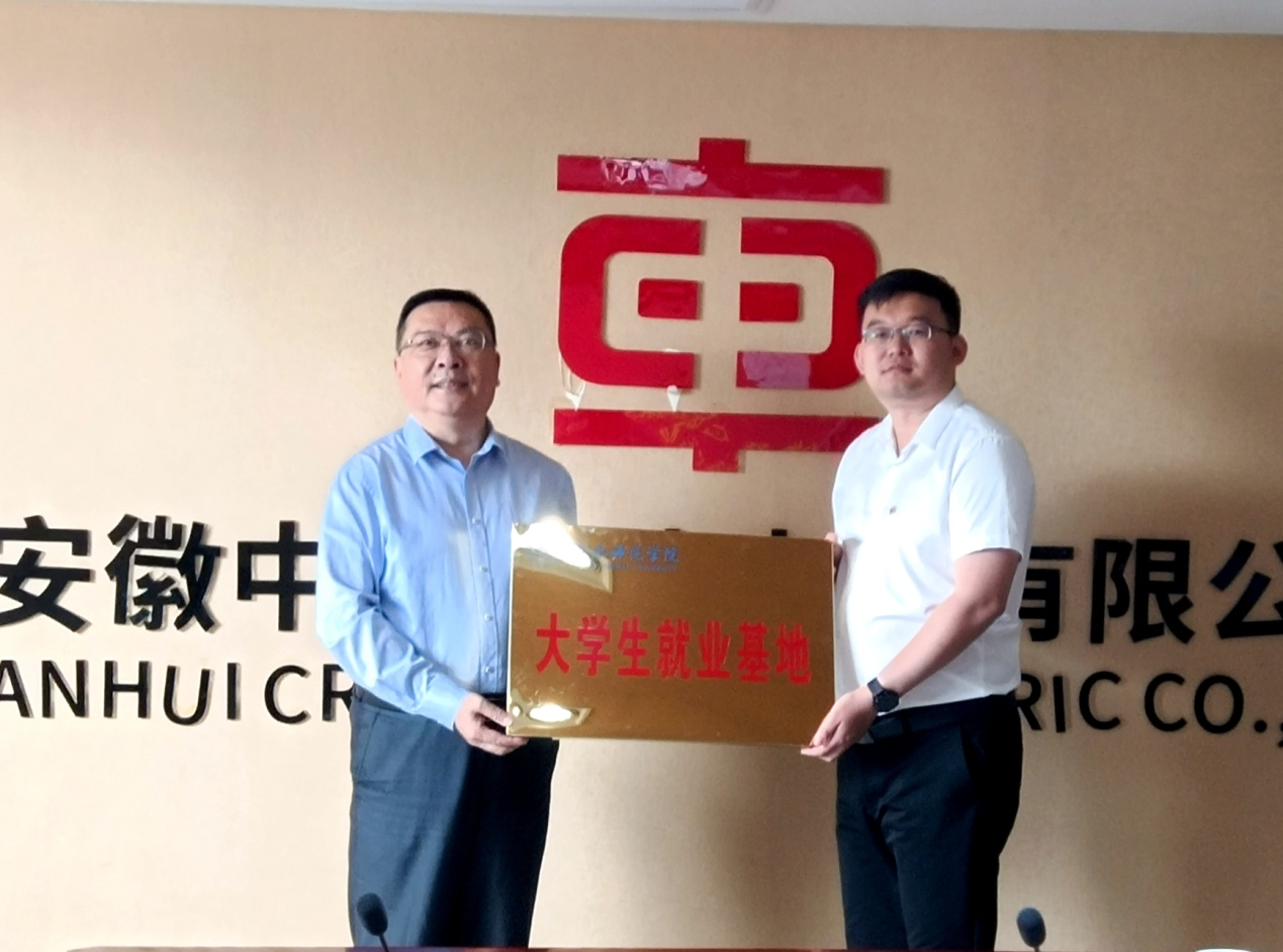 座谈会后,徐成钢和张雪男共同为合肥师范学院大学生就业基地揭牌。ac米兰官网中文网站和安徽中车瑞达电气有限公司签署共建毕业生就业实习基地合作协议。ac米兰官网中文网站还现场为张雪男颁发兼职教授聘书。