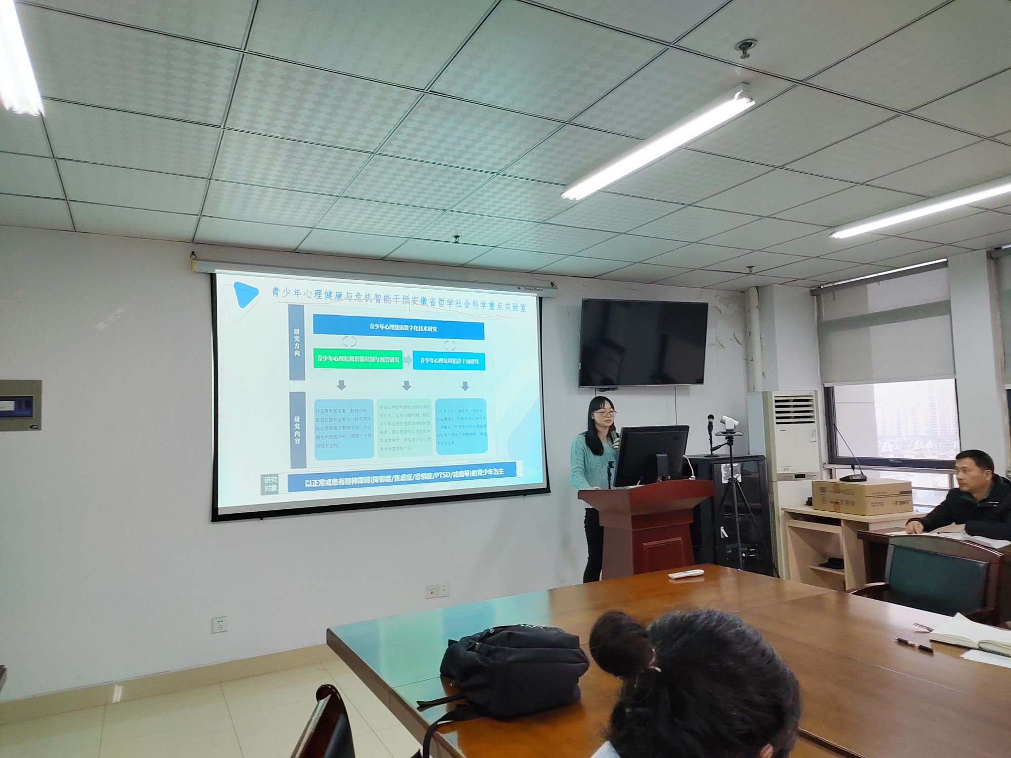 郭芝源老师结合自身科研方向,做了“智慧心理学科介绍”的报告。首先介绍了合肥师范学院科研平台——“青少年心理健康与危机智能干预安徽省哲学社会科学重点实验室”的三大研究方向、基础条件、人才团队组成及其开放基金项目。然后介绍了科研方向“抑郁症自动识别技术”的研究背景、研究现状与趋势、研究难点、公开可用数据集和相关工作。(ac米兰官网中文网站)